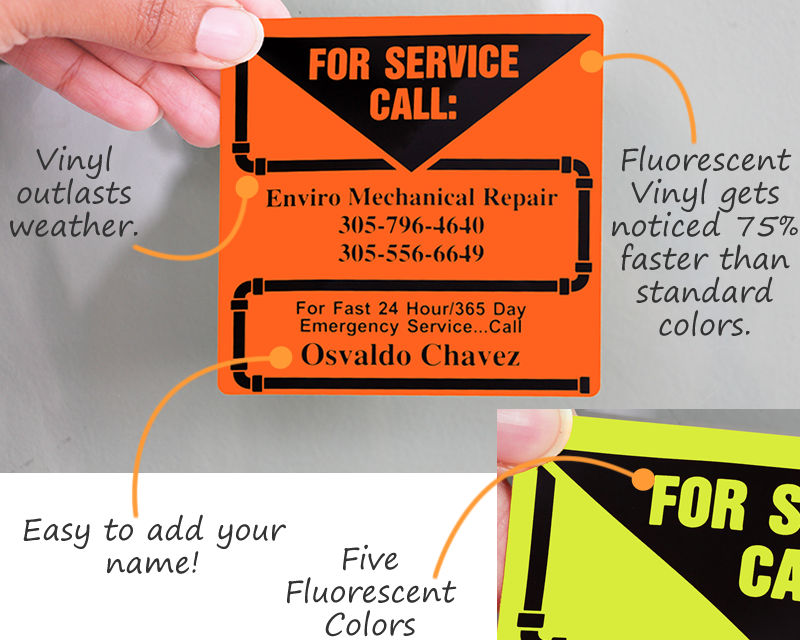You’ve spent a lot of advertising dollars getting the customer, now you need to make sure that they know how to come back. A good Service Label brings in repeat business. Include important contact information, so everyone knows where to find you.