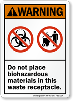 OSHA §1910.145(e)(4) also explains how Biohazard warnings should be posted “to identify equipment, containers, rooms, materials, experimental animals, or combinations thereof, which contain, or are contaminated with Biohazardous agents.