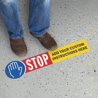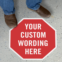 Custom floor signs are made from heavy-duty vinyl with a slip-resistant over-laminate and a high-bond adhesive that sticks to smooth concrete or tile.