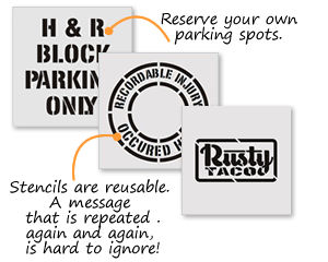 Our custom stencils can be produced in a wide range of sizes to suit nearly any project. We can create very small stencils with character heights down to 1/2 inch for detailed work, as well as very large stencils for pavement marking or large-scale signage. Whether you need a small stencil for equipment or a large one for a parking lot, such as an custom stencil, we can accommodate your needs.