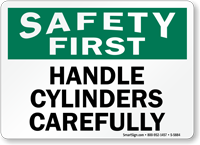 Pressurized cylinders are high-risk if damaged. You can find essential markers in our compressed gas signs collection to prevent tipping and dropping.