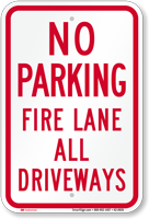 An 18x12 inch or 24x18 inch sign is typically large enough to be clearly read from a parked car or passing vehicle, and our do not block driveway shield sign is an eye-catching oversized option designed for maximum visibility at busy or wide driveway entrances where a standard-size sign may not be enough.