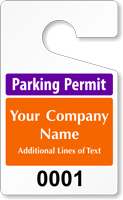 In addition to our white background Employee Parking Permits, we offer 10 assorted colors! You may choose from red, blue, light blue, green, orange, purple, black, burgundy, brown, and yellow. These color options make the perfect visual communication tools for situations where one may need segregation, like for identifying ADA parking users, temporary staff, management, and so on.