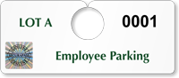 Our ValueTag Employee Parking Permits present the more economical parking control solution. These are our most affordable yet surprisingly durable tags made using 15 mil thick plastic and printed digitally. On the other hand, the ToughTag Employee Parking Permits are made of 30 mil thick plastic and embedded graphics. Compared to ValueTag, ToughTags cost more but are built to last for over three years.