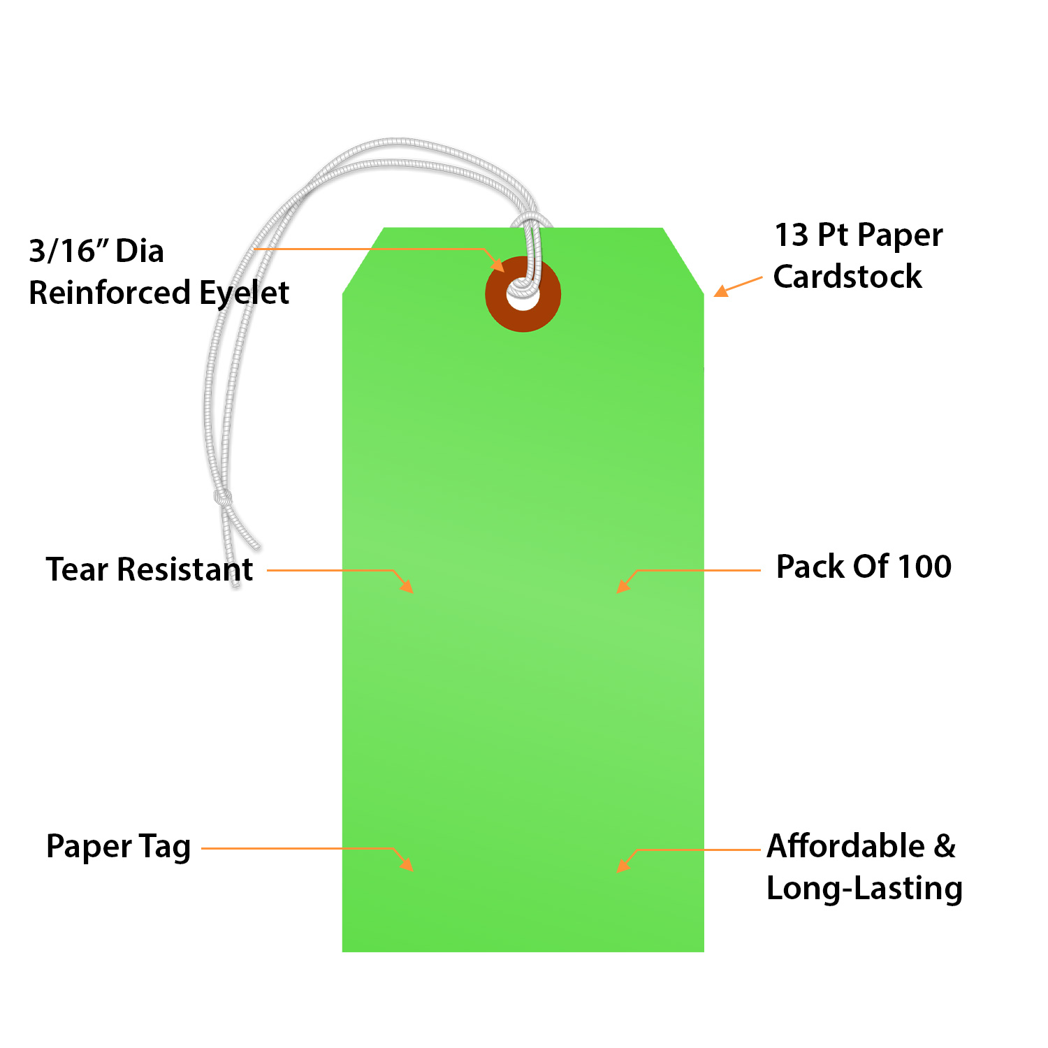 Fluorescent Green Tag #5: Blank Tag With Elastic String T361-5-E-FG-100 Learn More...
