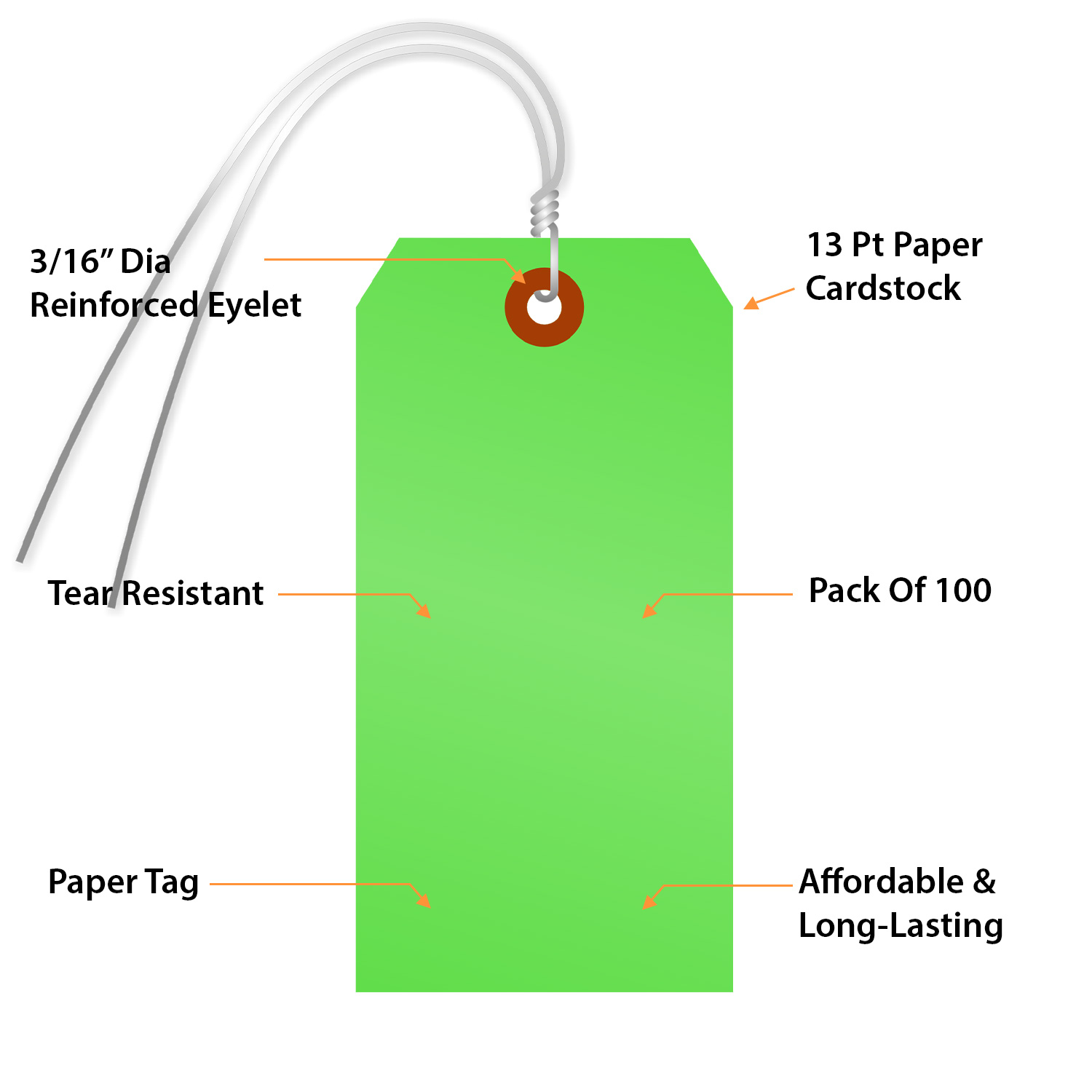 Fluorescent Green Tag #5: Blank Tag With Wire T361-5-W-FG-100 Learn More...
