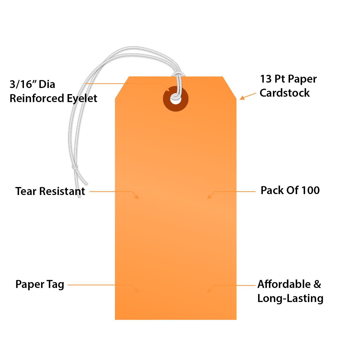 Fluorescent Orange Tag #5: Blank Tag With Elastic String T361-5-E-FO-100 Learn More...