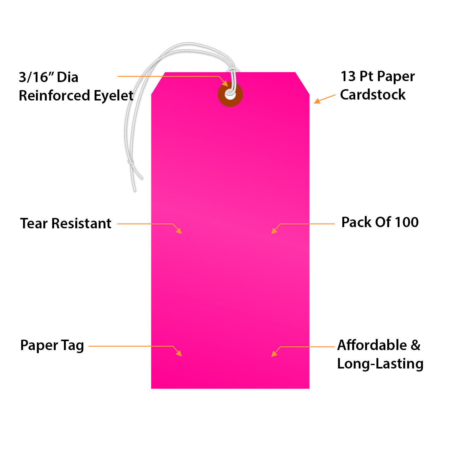 Fluorescent Pink Tag #8: Blank Tag With Elastic String T361-8-E-FP-100 Learn More...