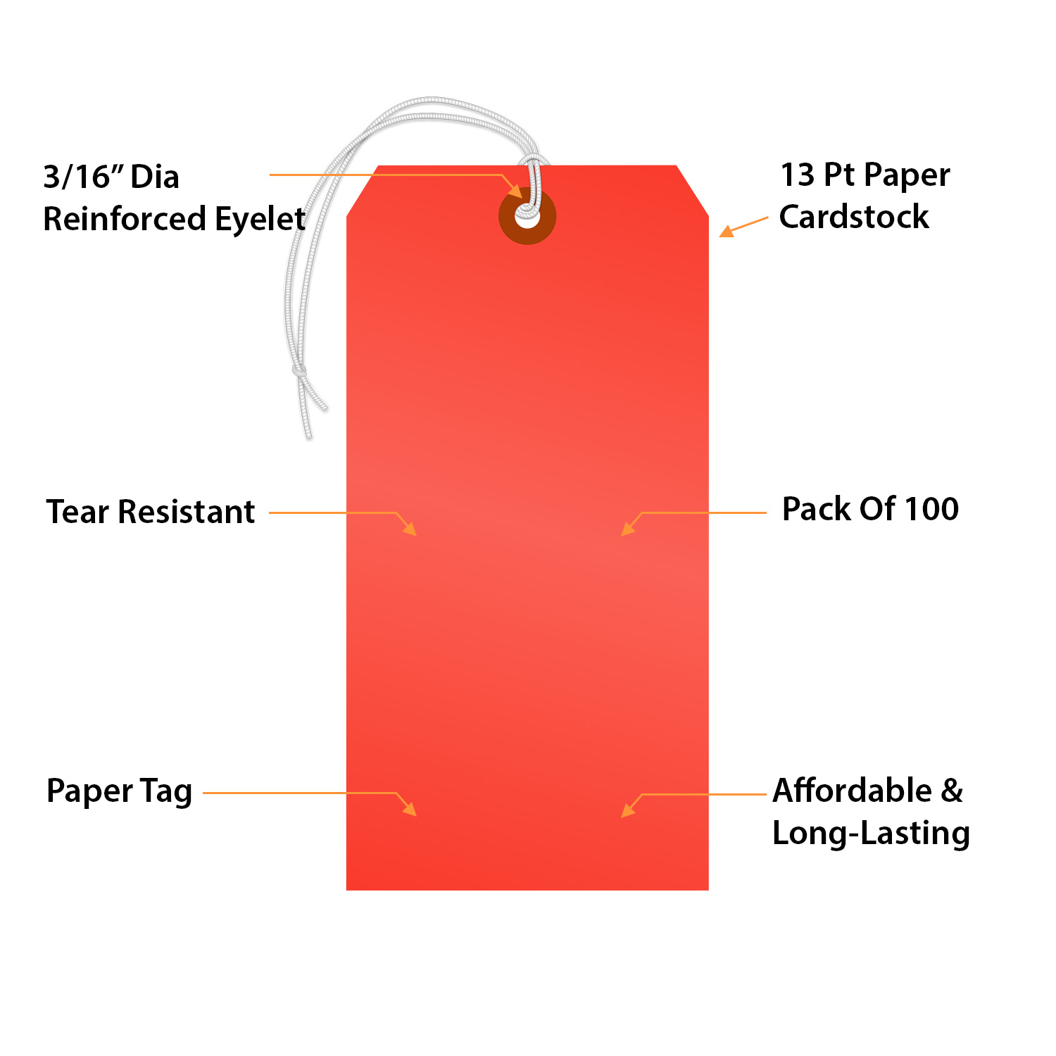 Fluorescent Red Tag #8: Blank Tag With Elastic String T361-8-E-FR-100 Learn More...