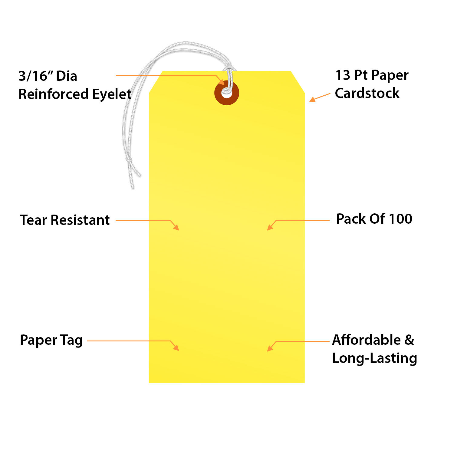 Fluorescent Yellow Tag #8: Blank Tag With Elastic String T361-8-E-FY-100 Learn More...