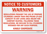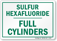 A welding or fabrication shop typically needs our gas cylinder storage sign, full cylinder sign, empty cylinders sign, gas type identification markers, chaining requirement signs, and safety handling instruction signs, all available in stock with same-day shipping.