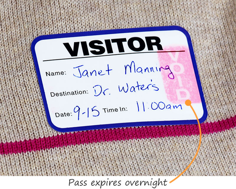 The time-expiring labels were professionally done. Our employees now can easily identify if visitors have registered at the main office to know if they have been authorized to be on site. The duplicate form behind the name label keeps a log of all visitors. The time-expiring feature is exceptional, so the badge is considered void after 24 hours, therefore, it's easy to identify if a previous visitor is using the same badge to re-enter work sites which deems them unauthorized.