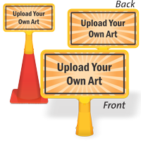 Our upload your own art custom sidewalk sign and our totally custom signs builder let you submit your own design file with any combination of text, graphics, logos, and colors, giving you complete creative control over the finished sign with no restrictions on layout or messaging.