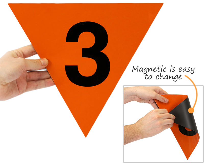 Yes, our military fire division flip placards let you quickly change from one hazard symbol to another as contents change, available in 12 inch and 24 inch sizes in standard and reflective aluminum that meet DoD 6055.9-STD requirements for storage facilities with changing inventories.