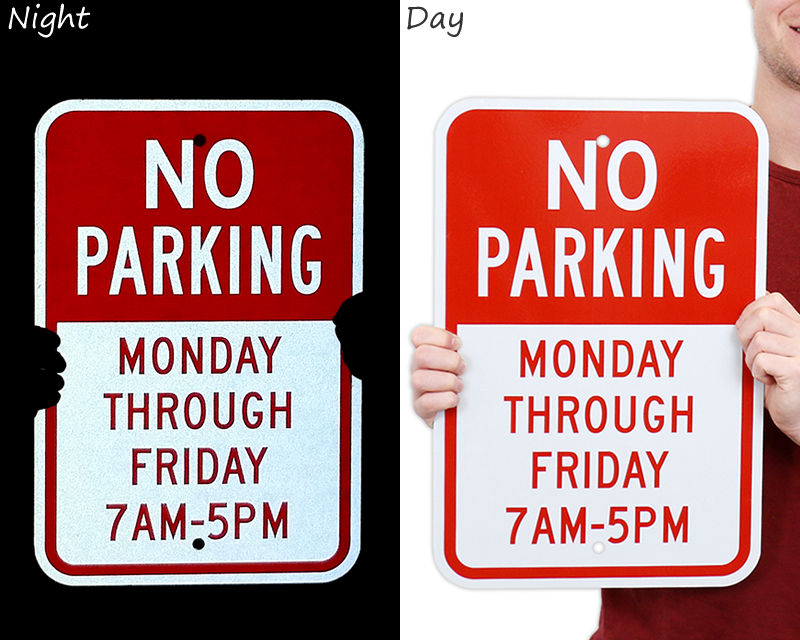 Yes. All of our no parking signs, including custom ones, are available with reflective sheeting options like Engineer Grade or High-Intensity Prismatic. Choosing a reflective option for your sign, such as the custom no parking symbol sign, is critical for 24/7 enforceability, especially in dark parking lots or garages. Reflectivity ensures drivers can see the warning at night, which is a key principle of the MUTCD's standards on sign retroreflectivity.