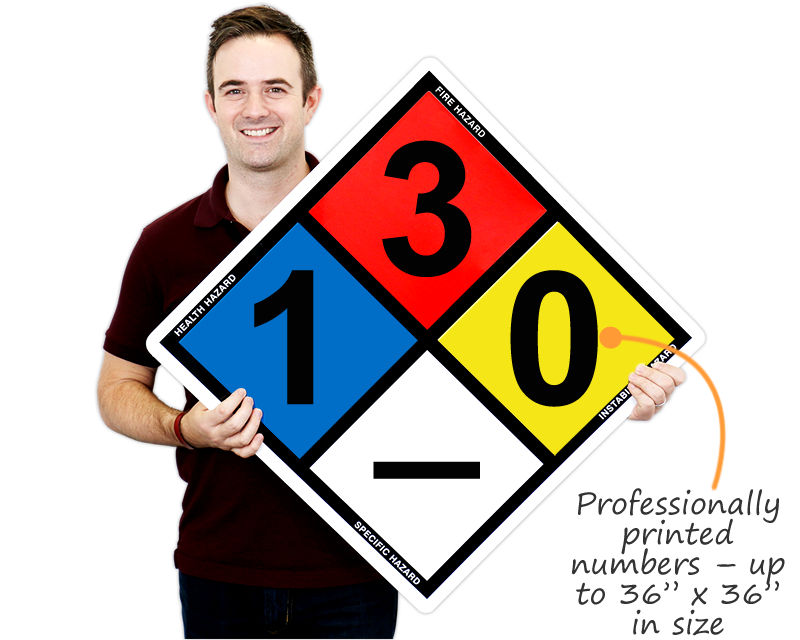 NFPA 704 signs provide a simple, readily recognized, easily understood system for identifying the specific hazards of a material and the severity of the hazard that would occur during an emergency response.
