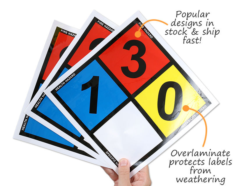 Yes, you can customize NFPA diamonds for your specific needs. We also offer placard kits with number and symbol packs that allow you to build and update hazard ratings on-site.