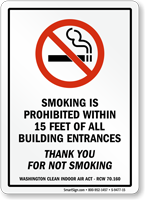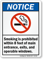 • • Many states ban smoking within 25 ft of building entrance and exit doors. Post our signs to make the law known and keep your facility smoke-free.