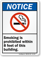 • • Many states ban smoking within 25 ft of building entrance and exit doors. Post our signs to make the law known and keep your facility smoke-free.