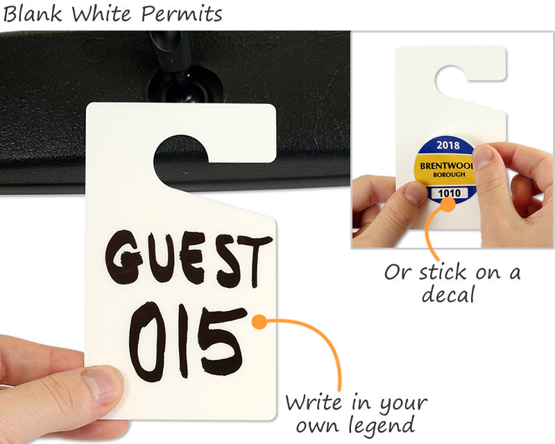 • • Customize blank hang tags on site. Add text or numbers with a marker, and place a label on top. Blank tags are also ideal temporary placeholders for regular permits.