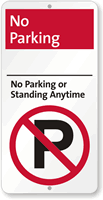 A no stopping sign prohibits all vehicle stops including momentary pauses while a no standing sign allows brief stops to drop off or pick up passengers but prohibits waiting, and our no parking, no standing, and no stopping signs collection makes it easy to find the exact restriction level you need for any zone on your property.