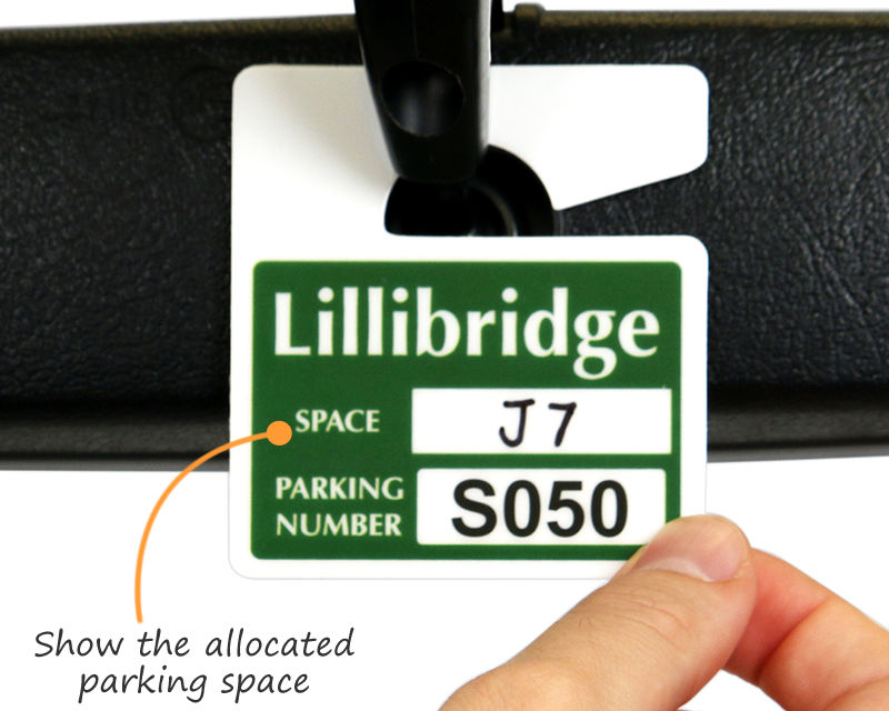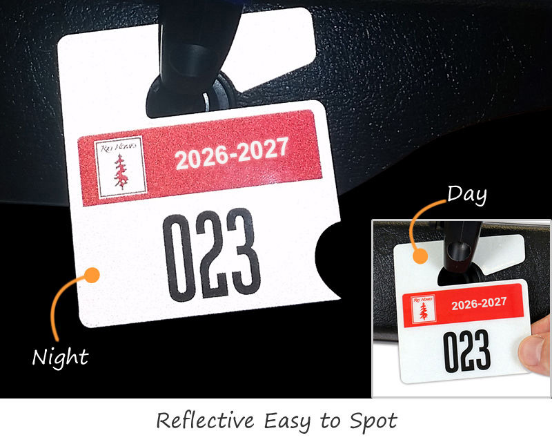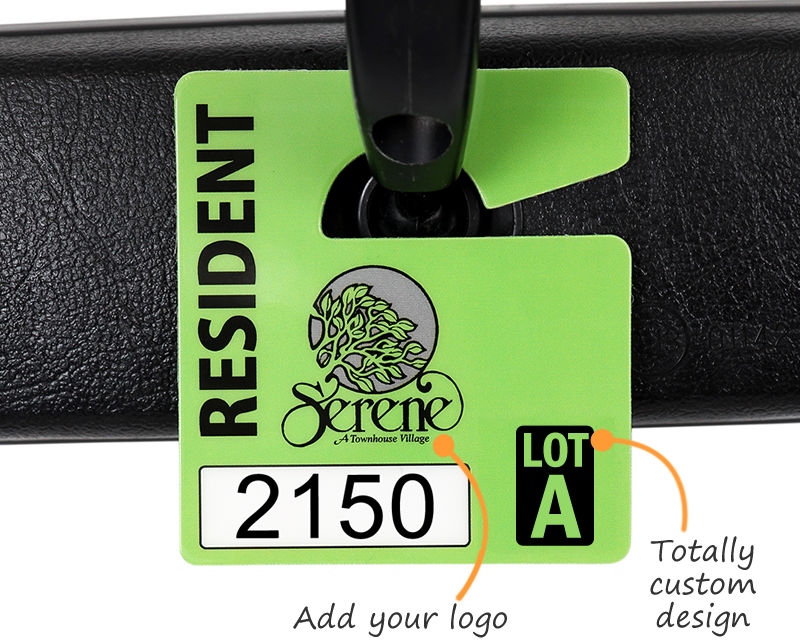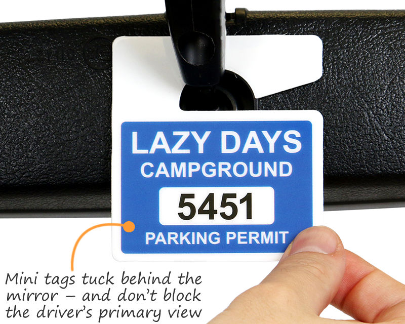 • • Miniature parking permit hang tags are ideal for maximum visibility and minimum obstruction.