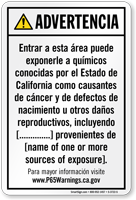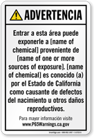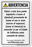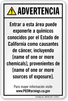 Yes, our consumer product exposure Prop 65 sign is one of our customizable templates where you can specify the chemical name and source of exposure, formatted at the minimum 72-point font size required by law with sign size adjusted as needed to accommodate additional chemical information.