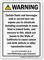 • • We offer a large selection of California Prop 65 signs and labels, both, in English and Spanish, that comply with the most recent regulations (Effective August 30, 2018).