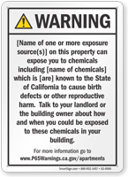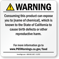 Yes, our consumer product exposure Prop 65 sign is one of our customizable templates where you can specify the chemical name and source of exposure, formatted at the minimum 72-point font size required by law with sign size adjusted as needed to accommodate additional chemical information.