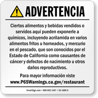 • • We offer a large selection of California Prop 65 signs and labels, both, in English and Spanish, that comply with the most recent regulations (Effective August 30, 2018).