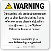 Yes, our consumer product exposure Prop 65 sign is one of our customizable templates where you can specify the chemical name and source of exposure, formatted at the minimum 72-point font size required by law with sign size adjusted as needed to accommodate additional chemical information.