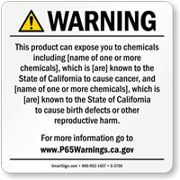 • • We offer a large selection of California Prop 65 signs and labels, both, in English and Spanish, that comply with the most recent regulations (Effective August 30, 2018).