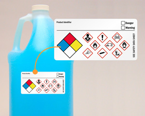 Fill out pertinent information on this GHS label to communicate accurate chemical information. Indicate the severity of the chemical hazard by choosing the appropriate header (Danger or Warning)