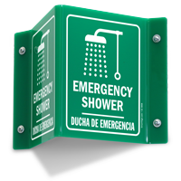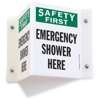 Projecting safety shower signs are a great way to ensure that workers in need can easily locate the shower unit without wasting any time. These signs are printed on two sides and are visible from multiple angles, hence rather difficult to miss. Choose from acrylic and high-density polyethylene projecting signs. You may also go for standard or glow aluminum ceiling signs.