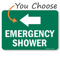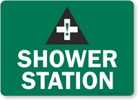 Accidents happen. Use our Safety Shower Signs to direct staff to the shower stations so that any dangerous chemical can be washed off an individual's head and body immediately after coming in contact with the chemical. Emergency Shower Station Signs not just ensure safety in your facility but also help you comply with OSHA regulations and protect you from hefty fines.