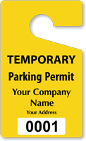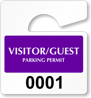 • • Order mini behind-the-mirror tags, jumbo permits, or cardstock fluorescent tags imprinted with your name. Fluorescent tags are ideal for short term or daily use. Plastic passes are durable enough for re-use by other guests and last for years. Oversized plastic guest passes are easy to hang, yet hard to lose!