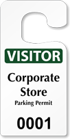 • • Order mini behind-the-mirror tags, jumbo permits, or cardstock fluorescent tags imprinted with your name. Fluorescent tags are ideal for short term or daily use. Plastic passes are durable enough for re-use by other guests and last for years. Oversized plastic guest passes are easy to hang, yet hard to lose!
