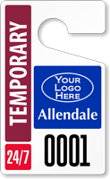 • • Order mini behind-the-mirror tags, jumbo permits, or cardstock fluorescent tags imprinted with your name. Fluorescent tags are ideal for short term or daily use. Plastic passes are durable enough for re-use by other guests and last for years. Oversized plastic guest passes are easy to hang, yet hard to lose!