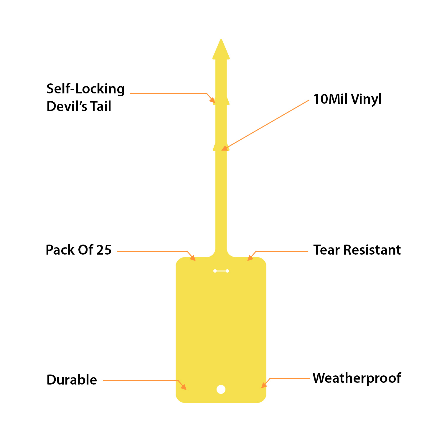 Yellow vinyl tags bring you the best self-locking design that's economical, too. These lock-on tags are ideal for industrial environments for a long-lasting hold.